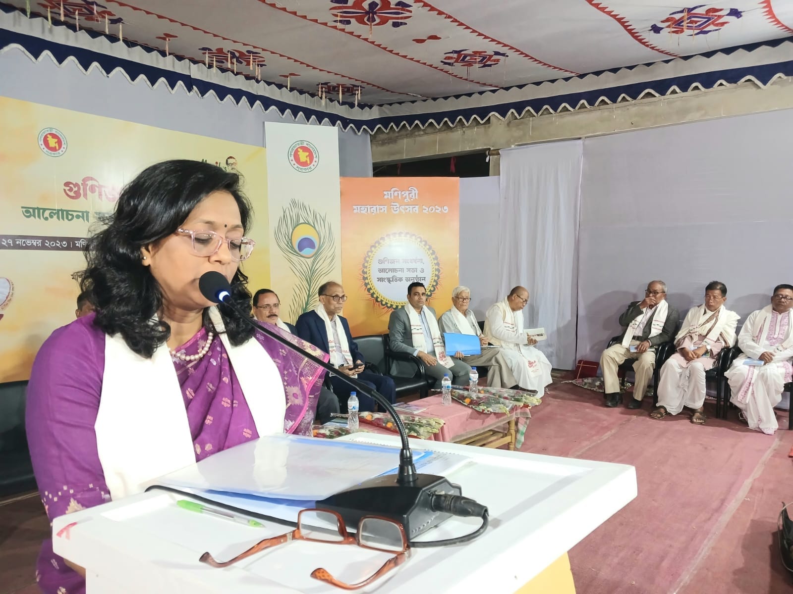 নুমিৎচুপ্পা থৌরম অসিদা অয়ুক্তা রৌখাল জগোয়গী থৌরমনা হৌরগা নুংথিলদা ঈশৈ-জগোয়গী কালচারাল ইভেন্ট অমসুং ওজারেন ইকায়খুম্নবা উৎপগী থৌরম অমদি নৈনবা মীফম অমসু পাঙথোক্খী। কমিটিগী মেম্বার সেক্রেটরি কবি সনাতন হামোম না কন্ডাক্ট তৌখিবা মহারাস উৎসব-২০২৩গা মরি লৈননা পাংথোকখিবা মিফম অদুদা উদযাপন কমিটিগী কনভেনর থৌনাওজম নিরঞ্জননা থৌরম মপু ওইরগা বাংলাদেশ গভর্ণমেন্টকী মিনিস্ট্রি ওফ সিভিল এভিয়েশন এন্ড ট্যুরিজমগী সেক্রেটরি মো: মোকাম্মেল হোসেন না চীফ গেষ্ট অমসুং গেষ্ট ওব ওনার ওইনা সত্যজিত কর্মকার, সেক্রেটরি মিনিস্ট্রি ওব প্লানিং ডিভিশন (জিওবি), অমদি স্পেসিয়েল গেষ্ট ওইনা বাংলাদেশ ট্যুরিজম বোর্ড কি সিইও (প্রধান নির্বাহী কর্মকর্তা) আবু তাহের মুহাম্মদ জাবের, মৌলভীবাজার ডিস্ট্রিক্টকি ডি সি ড. উর্মি বিনতে সালাম, কমলগঞ্জ উপজেলাগী ইউ এ ও (নির্বাহী অফিসার) জয়নাল আবেদীন, মণিপুরগী রাজর্ষি ভাগ্যচন্দ্র কালচারাল ফাউন্ডেশনগী ট্রেজারার তখেলম্বম ইরাবত, মুতুয়া মিউজিয়ামগী ডিরেক্টর মুতুয়া বাহাদুরনা শরুক য়াখি। থৌরমদুদা বাংলাদেশকী মণিপুরী খুন্নায়গী শক্নায়রবা মীওই তরুক লাইওইখ্রবা হামোম গোপাল (মরনোত্তর /নোঙ্গাখ্রবা), লাইওইখ্রবা হাওবম ফাল্গুনী (মরনোত্তর /নোঙ্গাখ্রবা), লাইওইখ্রবা কৈসাম বীরেন্দ্র (মরনোত্তর /নোঙ্গাখ্রবা), কৈসাম মনীন্দ্র কুমার সিংহ, থোঙাম প্রহলাদ, ইবুংহাল সিংহ শ্যামলবু ওজারেন ওইনা ইকাইখুম্নবা উৎখি।