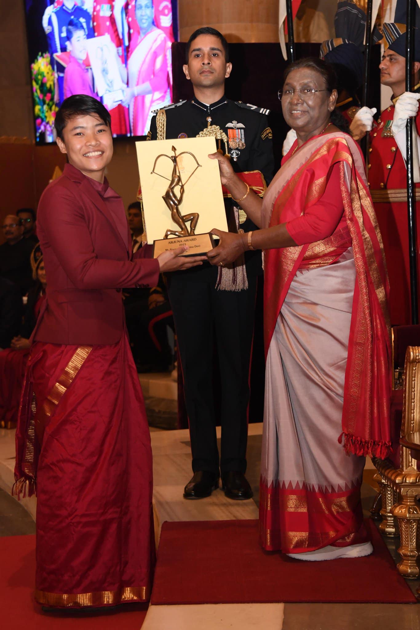 নিউ দিল্লী, জানুয়ারি ০৯ : পীকখ্রবা মণিপুরদগী তোঙান-তোঙানবা মশান্নশিংদা থোইদোক হেন্দোক্না মতিং লৈবা নুপা অমসুং নুপী শান্নরোয়শিং থোরক্তুনা লৈবাক অসিগী চাংদম্নবগী ফম্বাক্তা খক্তা নত্তনা লৈবাক অসিবু মহুৎ শিন্দুনা মালেমদা মশক তাক্লকপদগী ষ্টেট অসিবু স্পোর্টসকী পাৱর হাউসনি হায়নরকখিবদু ঙসি প্রেসিদেন্ট দ্রৌপদি মুরমুনা শান্নরোয় ২৬ তা অর্জুন এৱার্দ খূৎশিন্নখিবদা মণিপুরগী হোকি শান্নরোয় পুখ্রম্বম সুসিলা চনু অমসুং ৱুশুগী শান্নরোয় নাওরেম রোসিবিনাদসু খূৎশিন্নরকখিবনা অমুক্কা হন্না নীংশিংহনখ্রে।